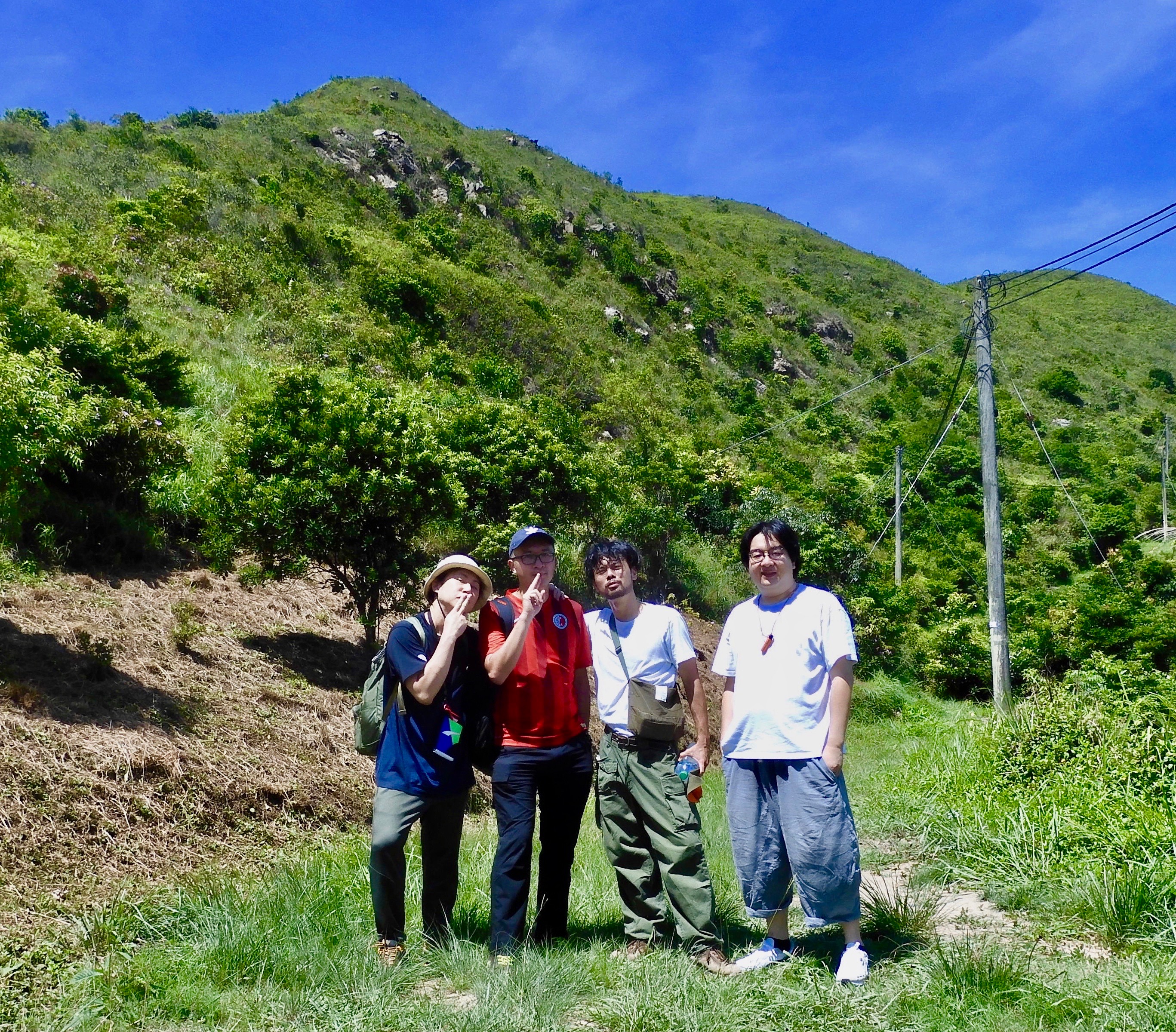 山是位於沙頭角邊境的紅花嶺,是電影《手捲煙》片首富象徵意義的場景。同行上山的有陳健朗導演和電影公司的Hyman,還有接送我們順暢安全到達起點的「肥腸」徐浩昌。