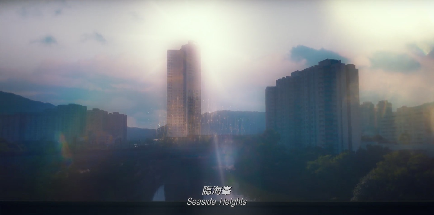 「另一個特點是青龍水上樂園的背景。我小時候,從荃灣乘車經過城門隧道後,一出沙田就會見到青龍水上樂園的摩天輪,還有那螺旋滑水梯也很標誌性,所以我設計故事主場景「臨海峯」的前身是青龍水上樂園。我上網找了一張照片,是從現在文化博物館旁的一條橋拍過去,相片中見城門河,遠處是青龍水上樂園的摩天輪,我們使用CG把原來的摩天輪抽走,加了一幢樓在該位置上。我們特意依照那張網上照片的角度去拍,強調青龍水上樂園的位置。場景的考究,像早年周冠威的《幻愛》讓屯門成了一個重要的景點,電影的社區感很重要。拍大圍就盡量要拍到大圍的特色,拍《正義迴廊》的大角咀都會盡量用大角咀的街道,金鐘雖然拍不到,但我都盡量找一些金鐘的景。這很重要,因為香港人身份的問題,香港人看會更有感覺,大圍人看會更加強烈,我喜歡電影有這種質感。」