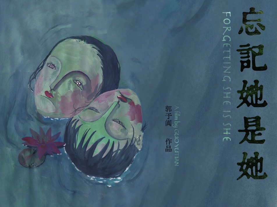 《忘記她是她》導演郭於闐畢業於香港浸會大學電影學院,這是她的首部劇情長片項目,監製是資深電影人陳慶嘉。電影講述一對非常要好的朋友原來是同父異母的姊妹,面對真相,姊姊選擇離開,妹妹則選擇殺了她。很多年之後,妹妹身邊出現一位愛上她的跟蹤狂,並裝扮成姊姊的樣子跟蹤她……